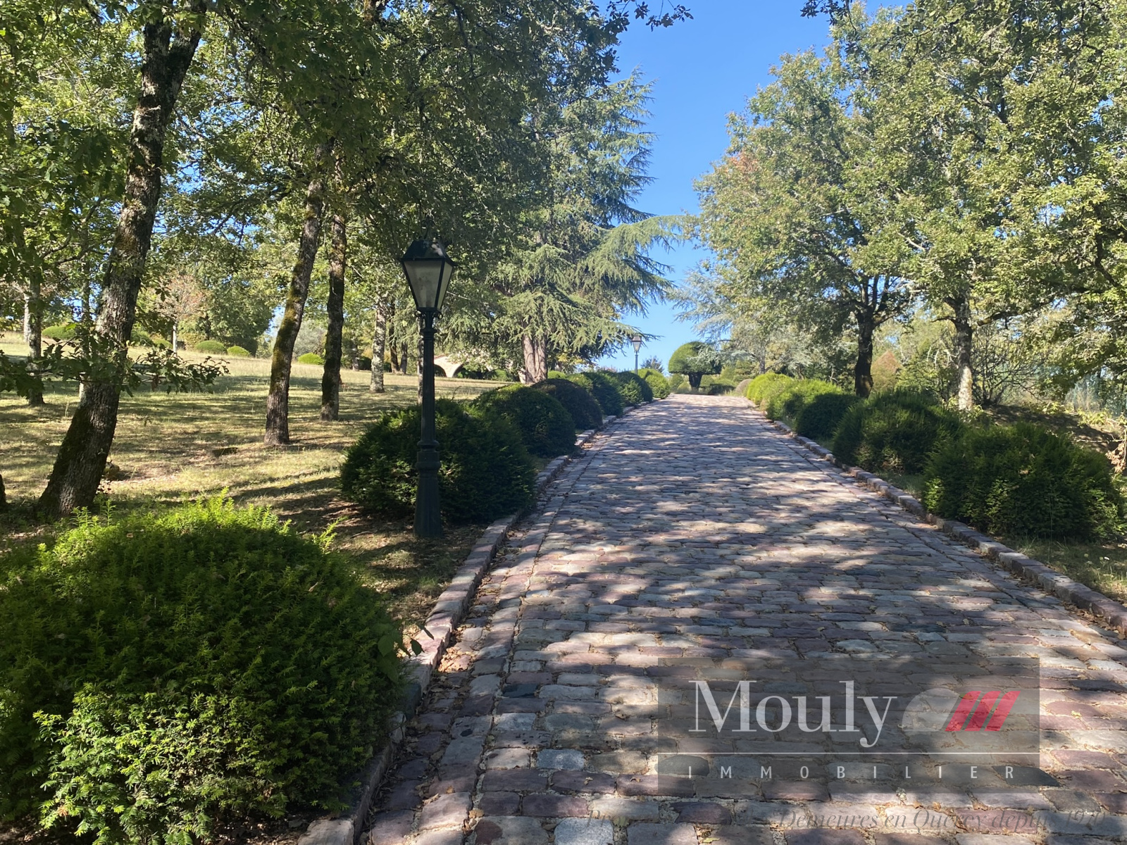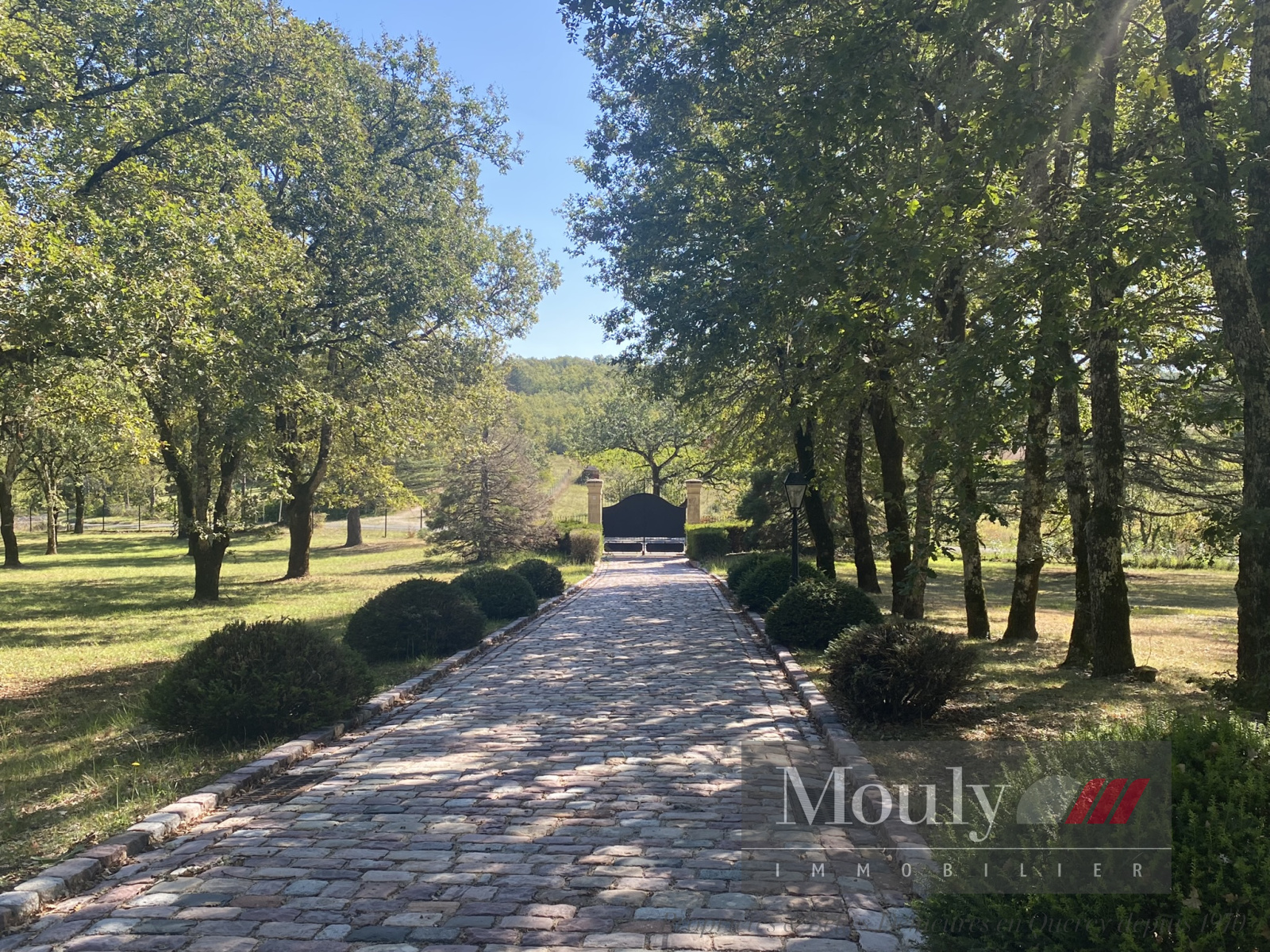 La propriété est au centre de son parc paysager et arboré avec de belles allées de buis donnant sur de vastes étendues d’herbe.