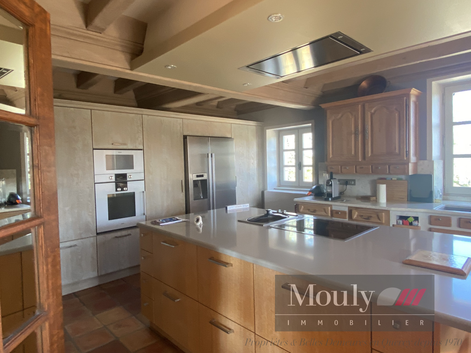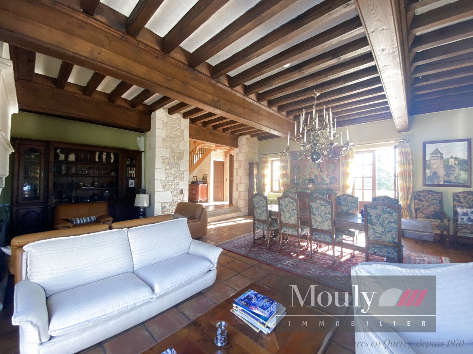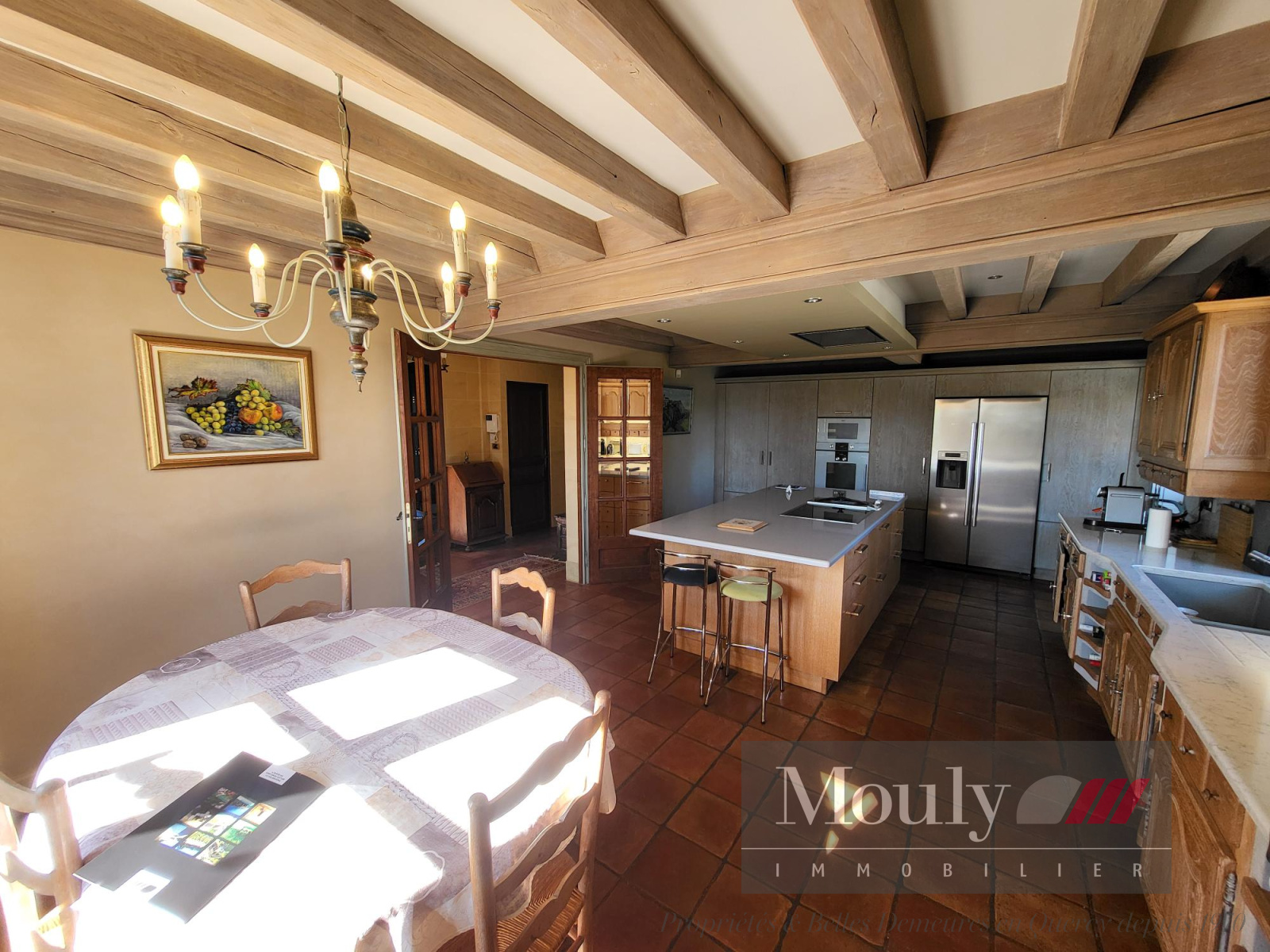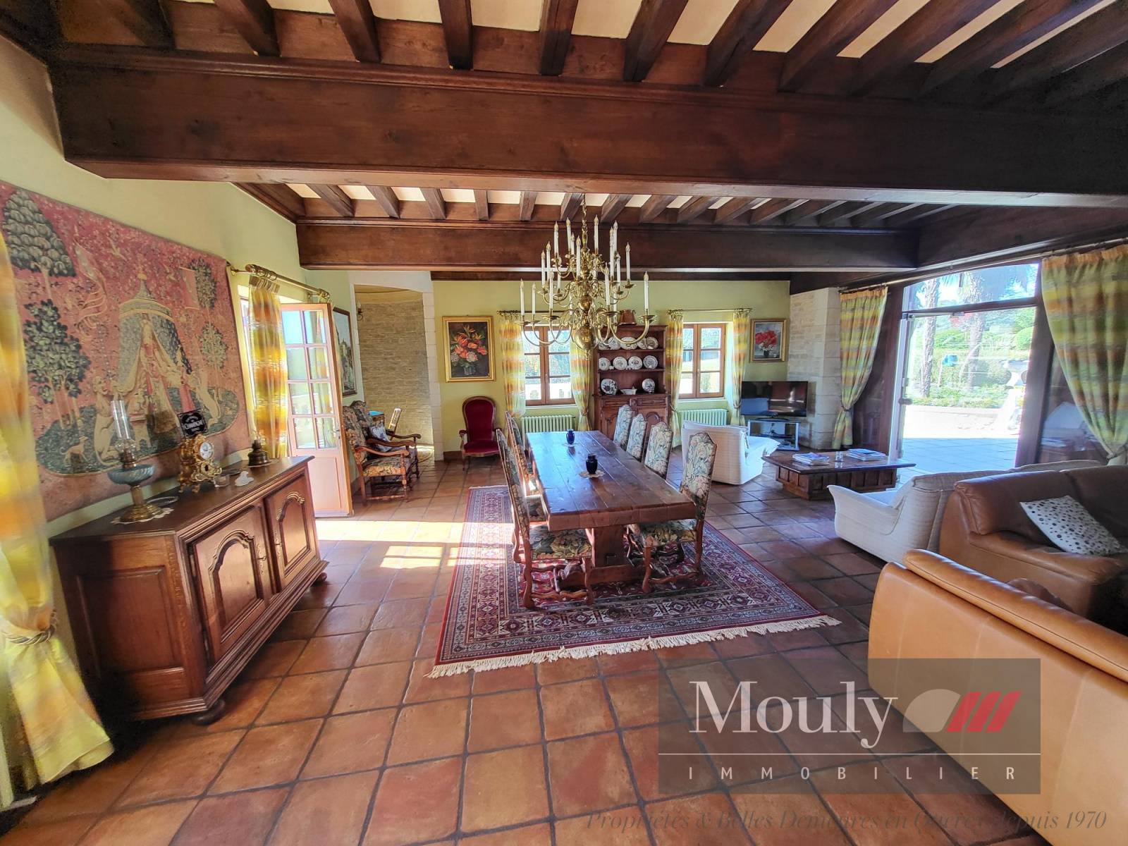 Vous y retrouverez aussi une salle à manger (60m²) avec plafond à la française et sa cheminée d'époque ; une cuisine équipée récente de 35m².