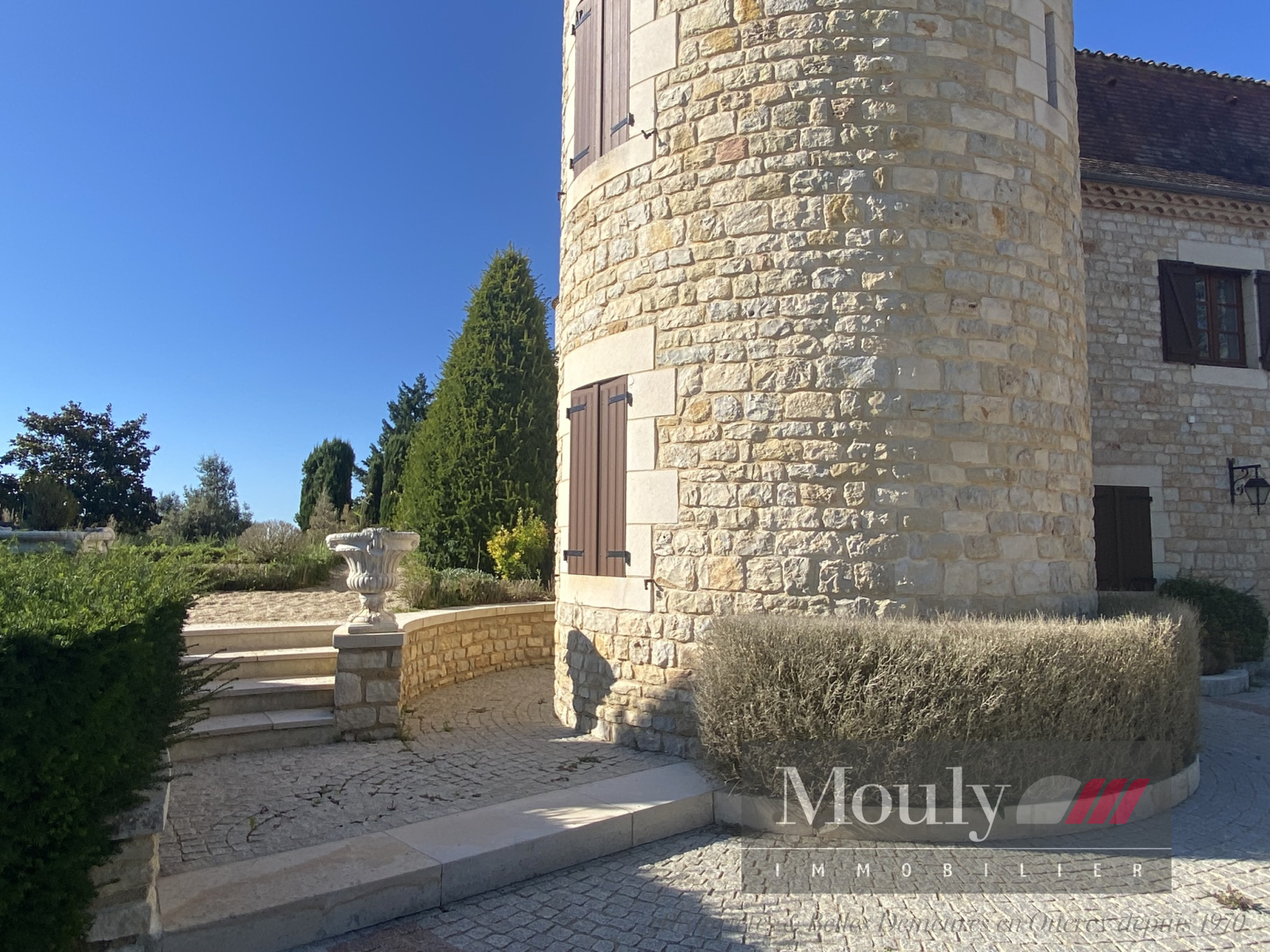 Cette demeure est composée d'une maison principale proposant de vastes volumes confortables et lumineux, ainsi qu'une maison d'amis et une grande dépendance de 150m².