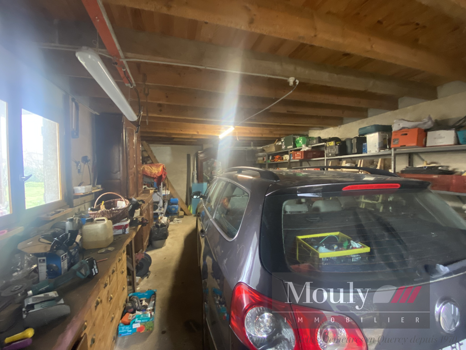 Grand garage avec atelier séparé.