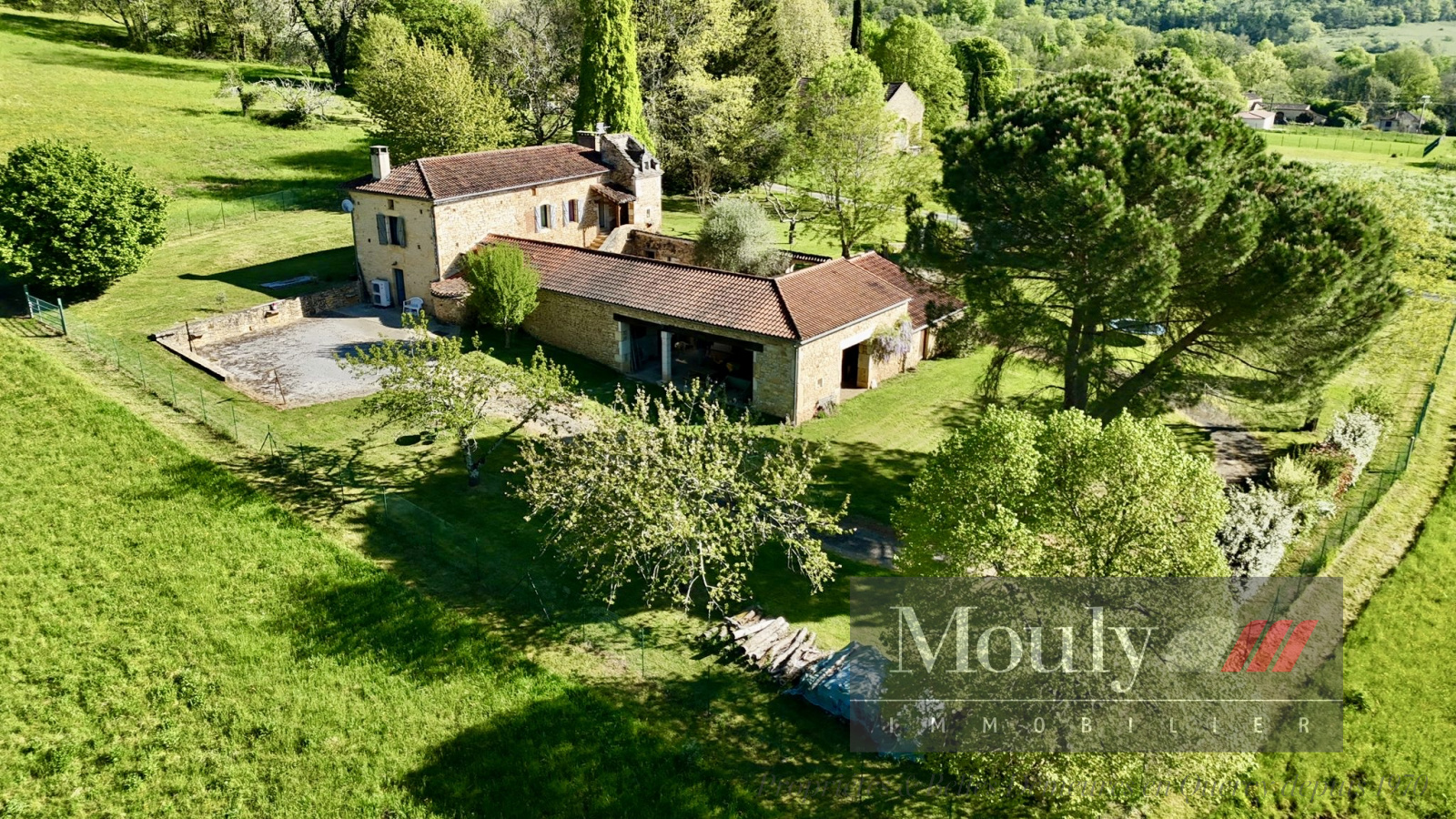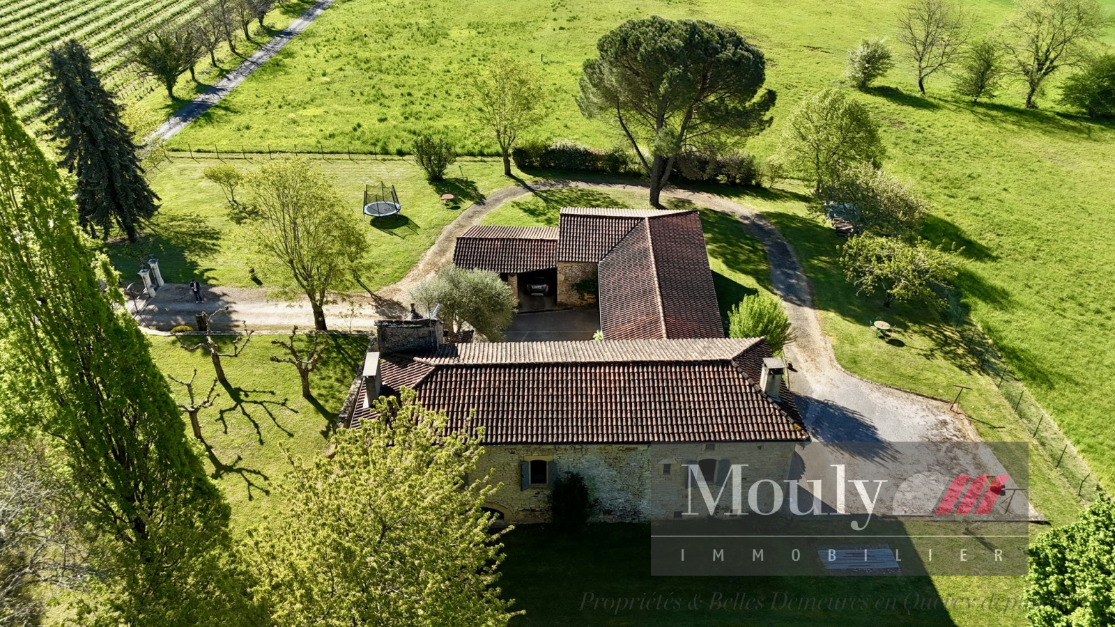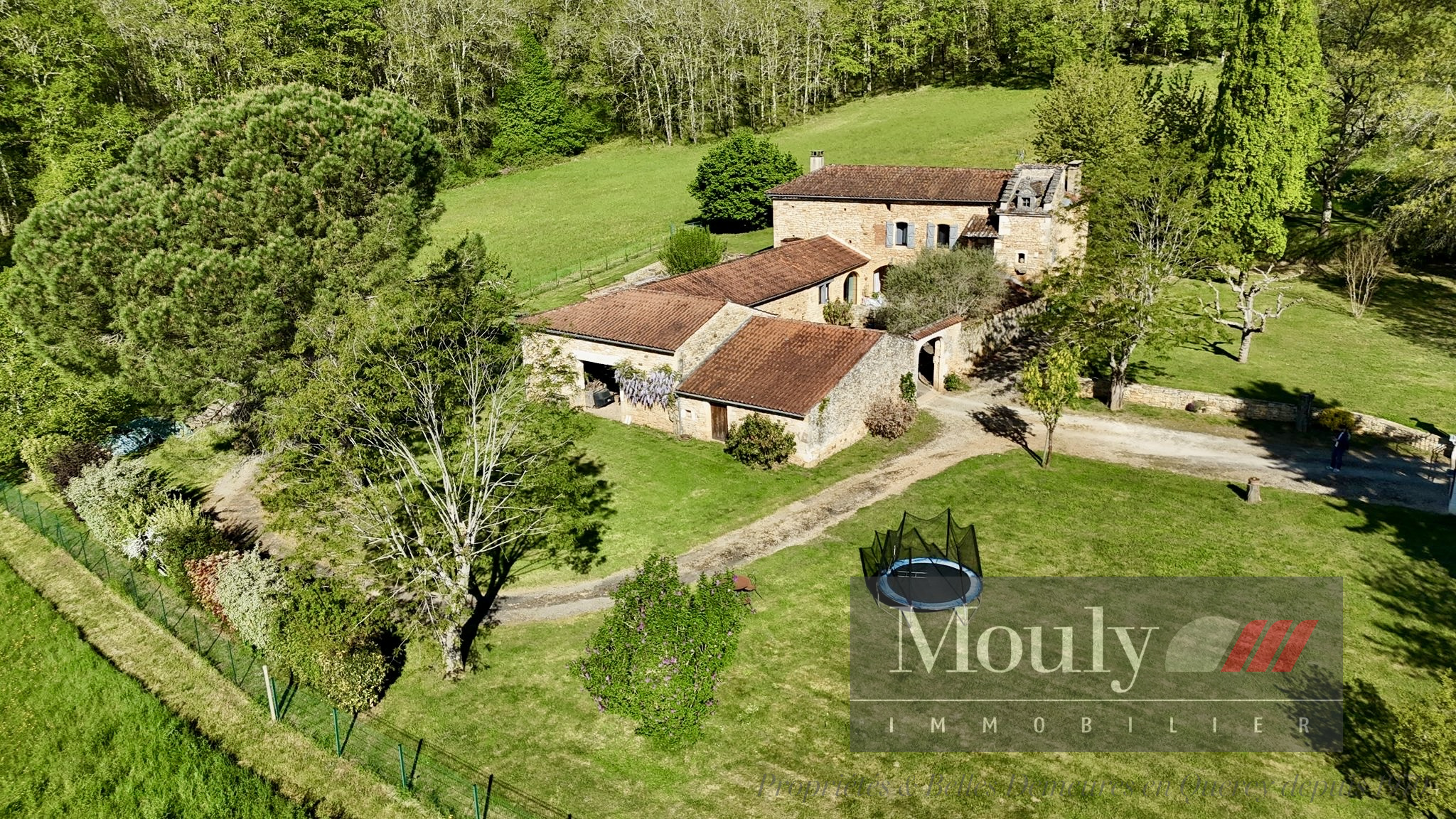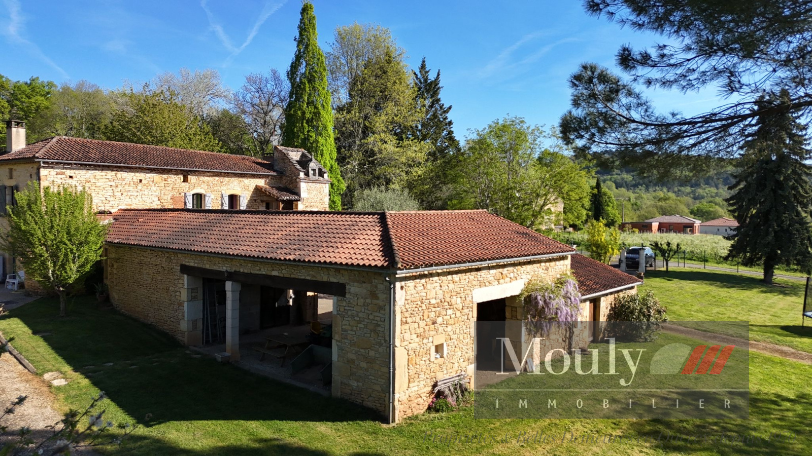Implantée sur un terrain de 2 hectares, en partie clôturé avec portail électrique, la propriété bénéficie d’un jardin paysager et d’une très belle vue sur les collines de la vallée du Lot.