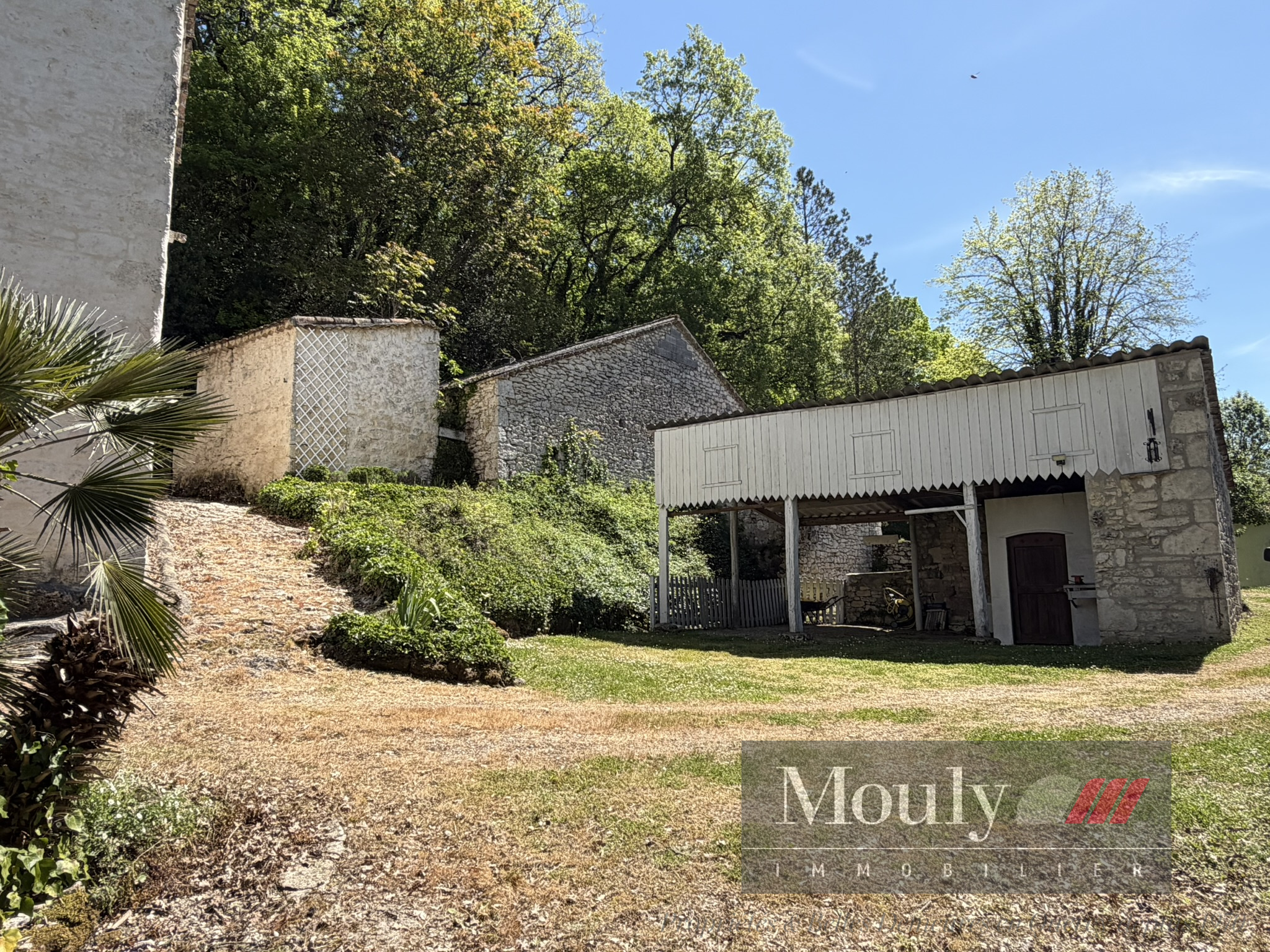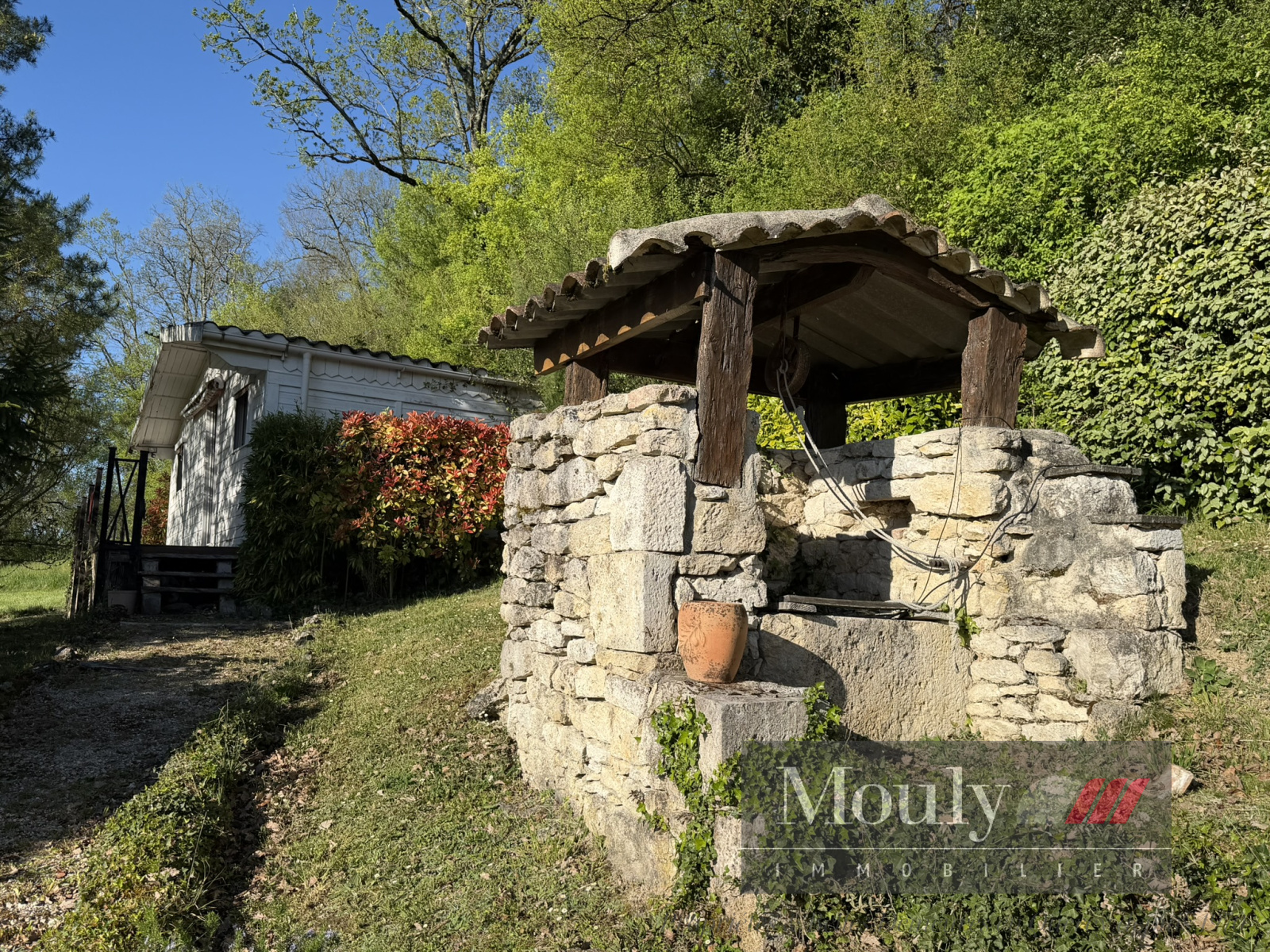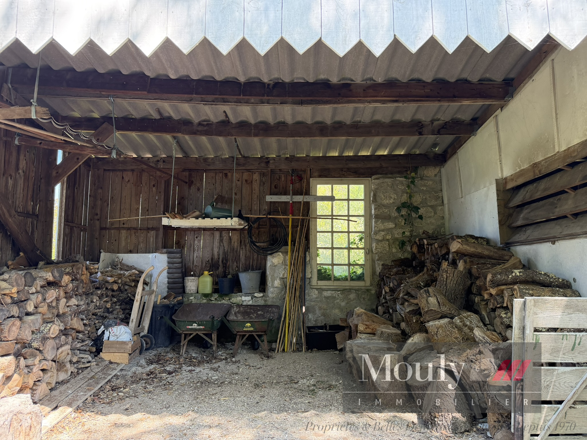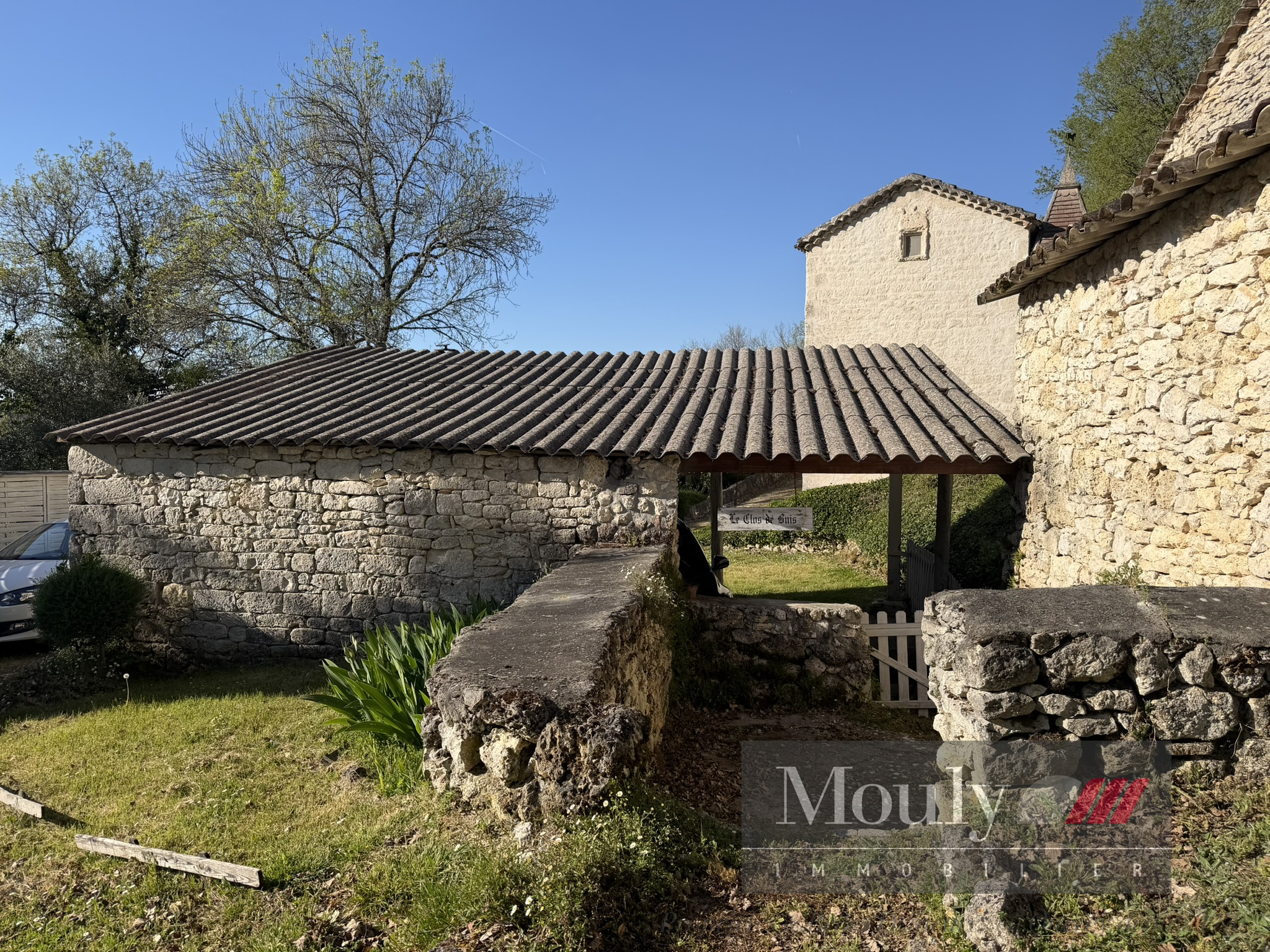 Un abri voiture, un atelier, un garage avec un espace de stockage pour le bois, un four en pierre et un puits en pierre complètent cette offre.