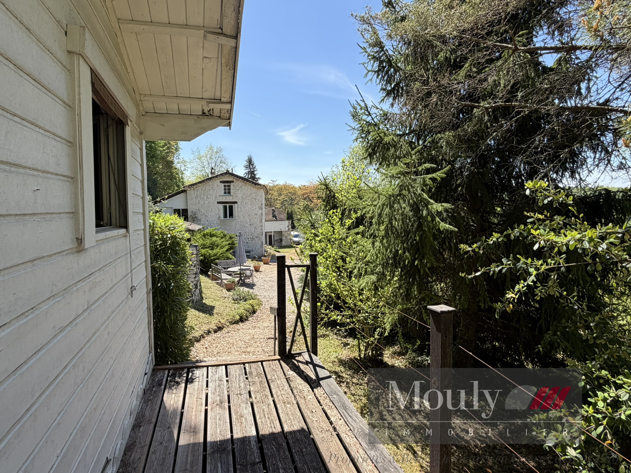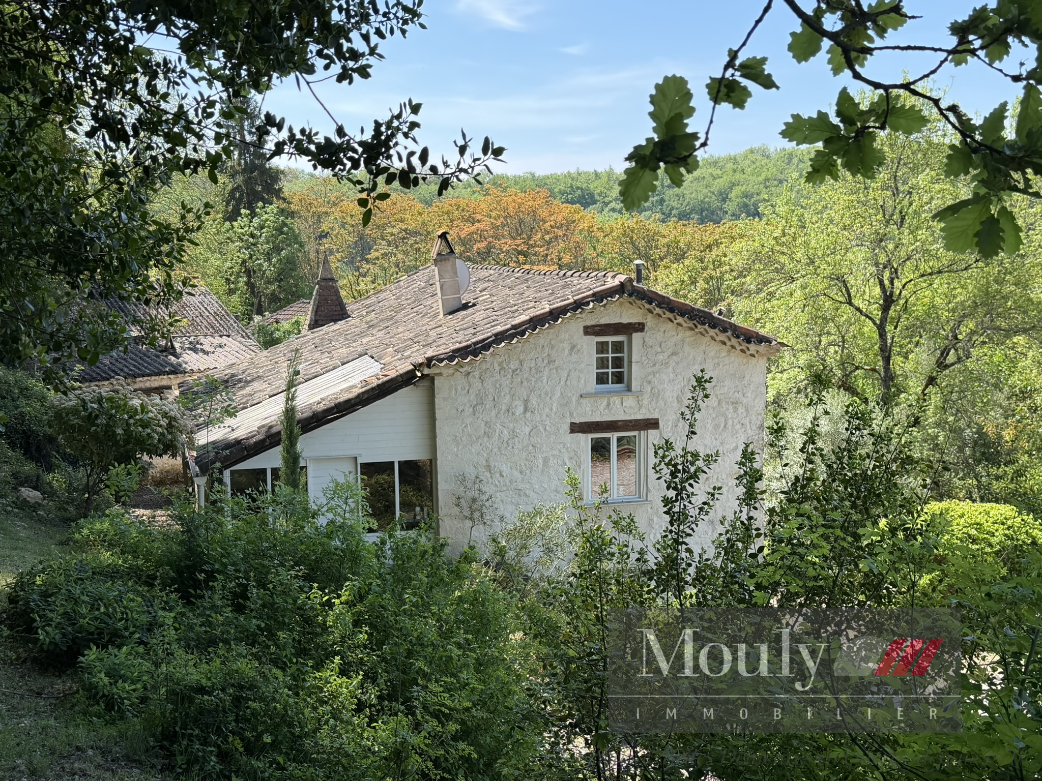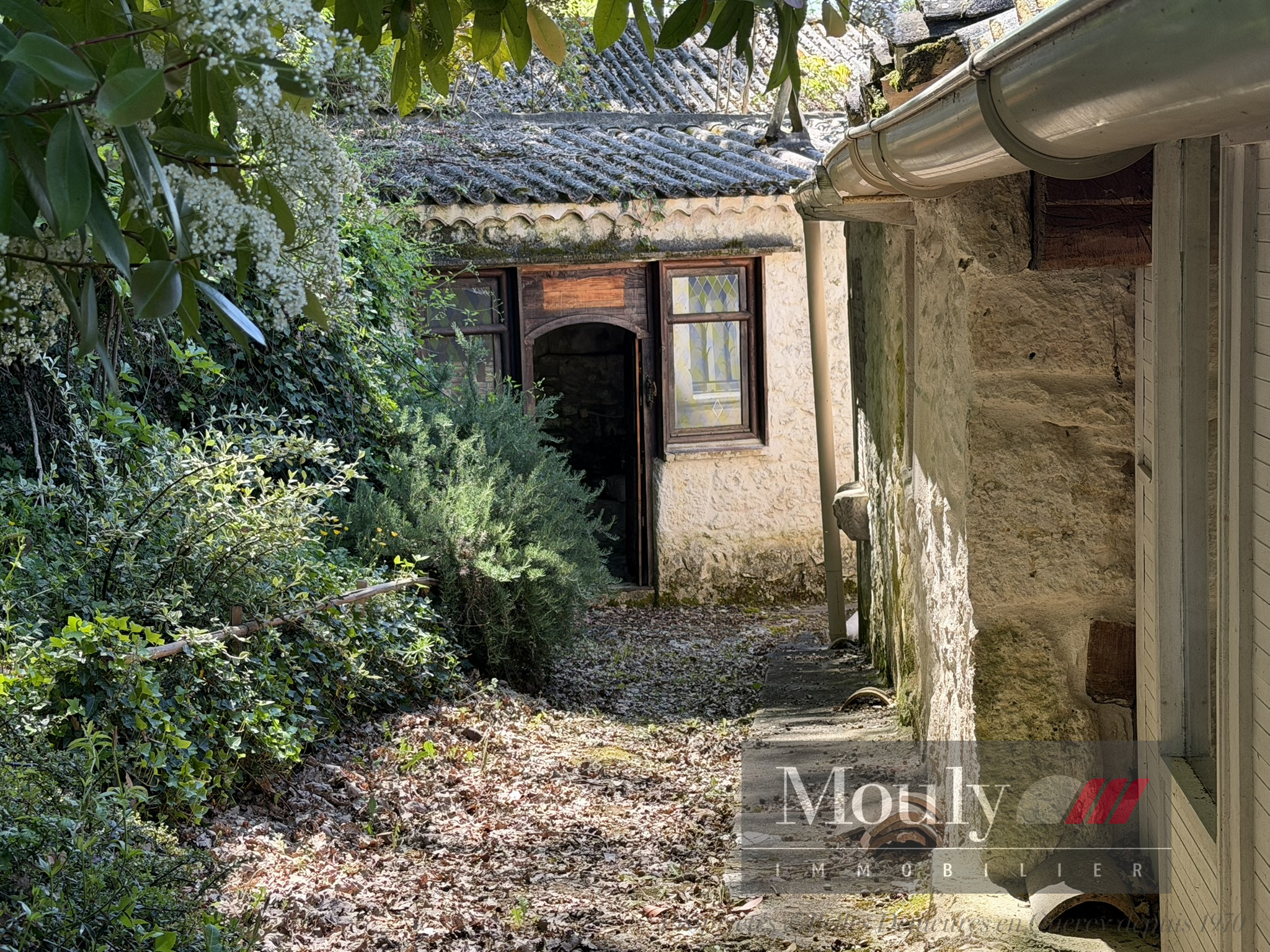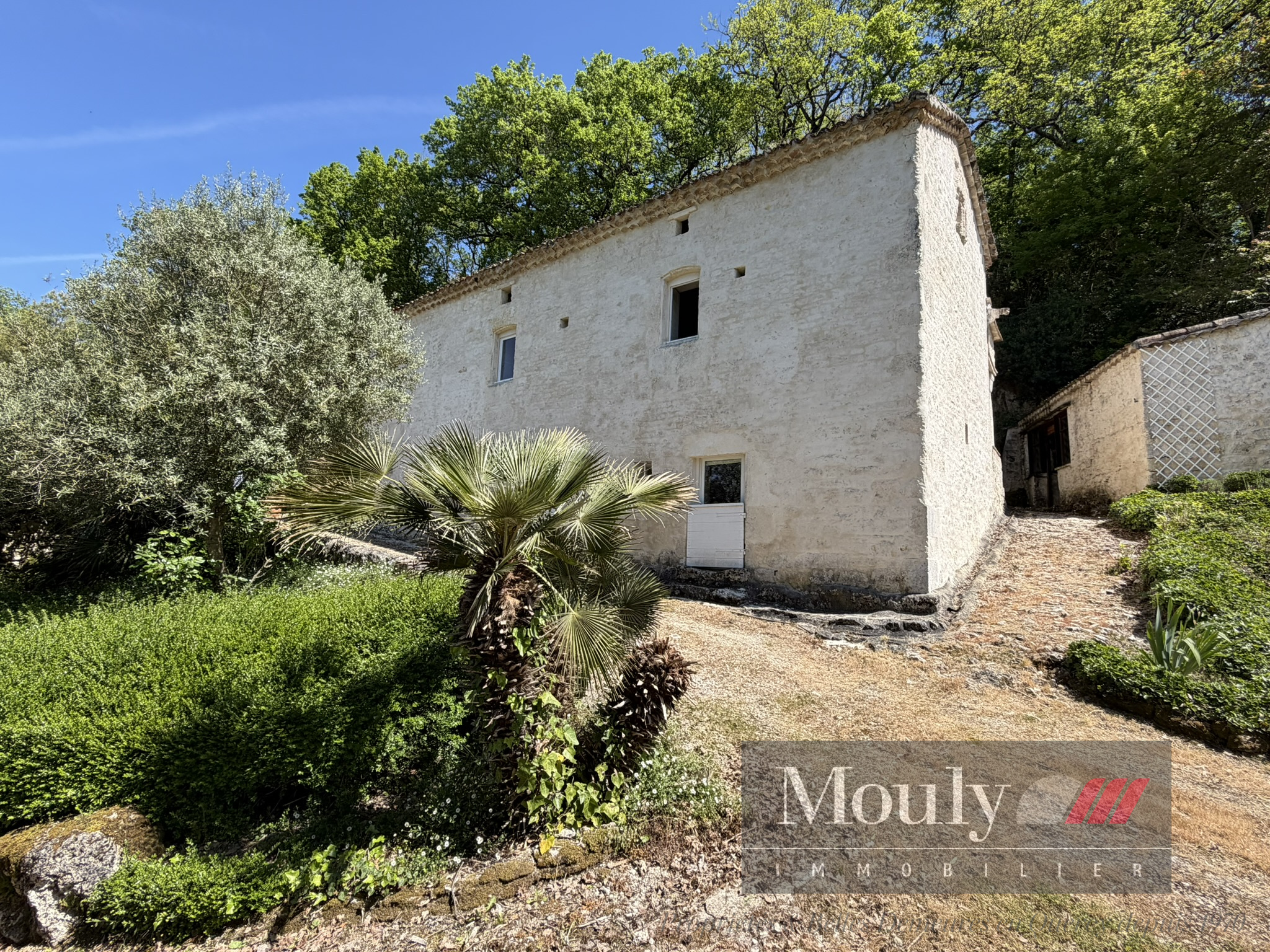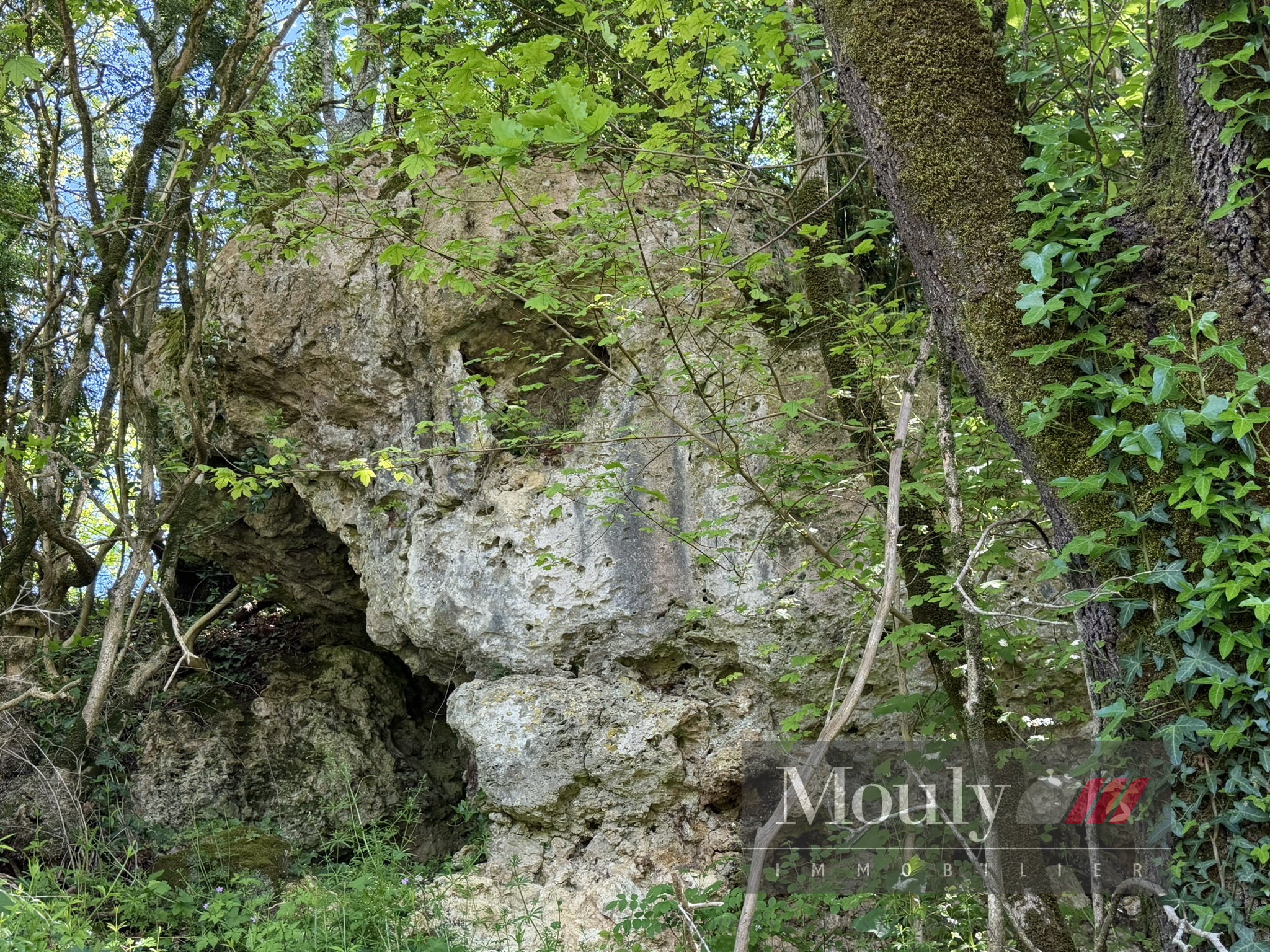 A l'extérieur, vous profitez d'un beau jardin arboré agrémenté des rocher à l'arrière côté bois avec une grotte qui confère au lieu un caractère rare et presque féerique. En plein jardin se trouve l'emplacement d'une piscine (à rénover entièrement) dominant la vallée, offrant un panorama exceptionnel.