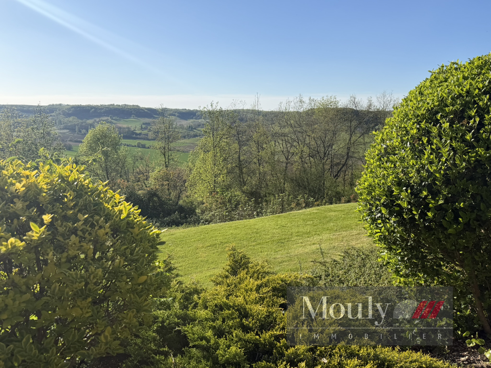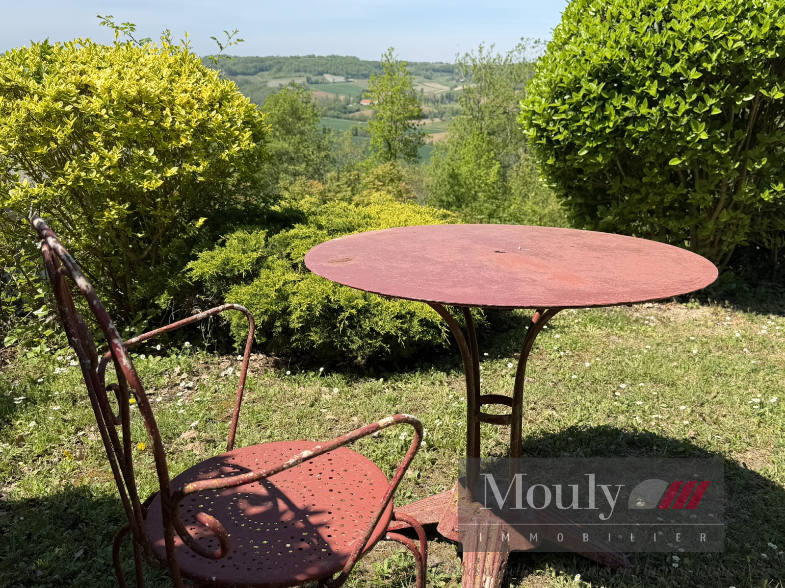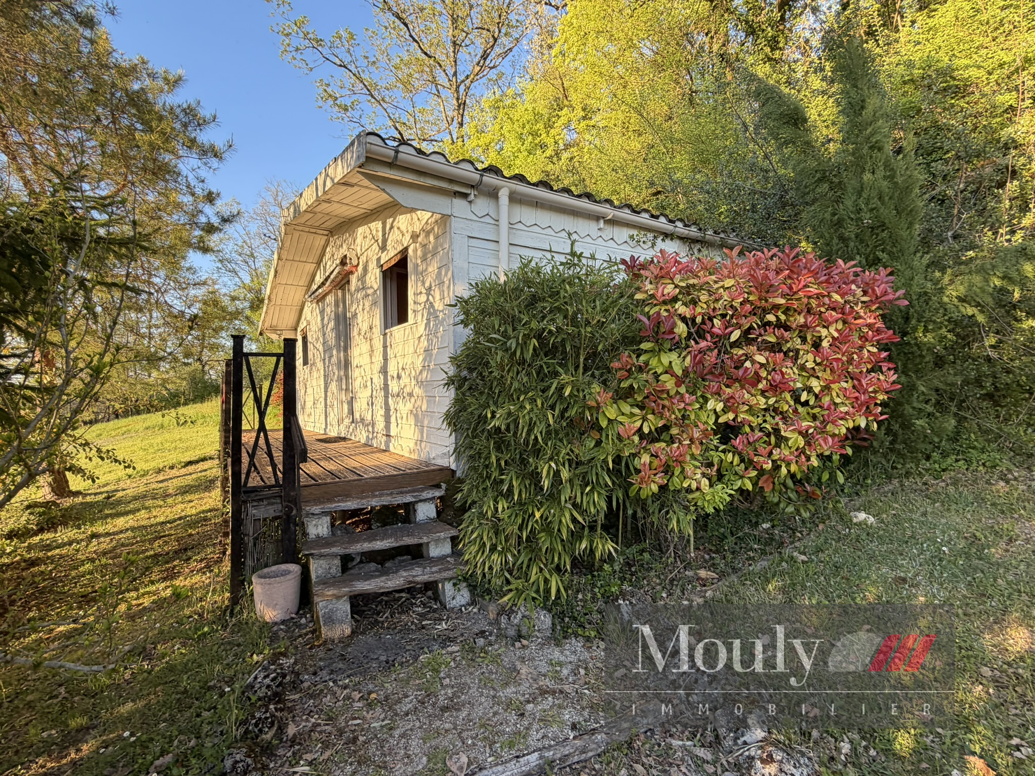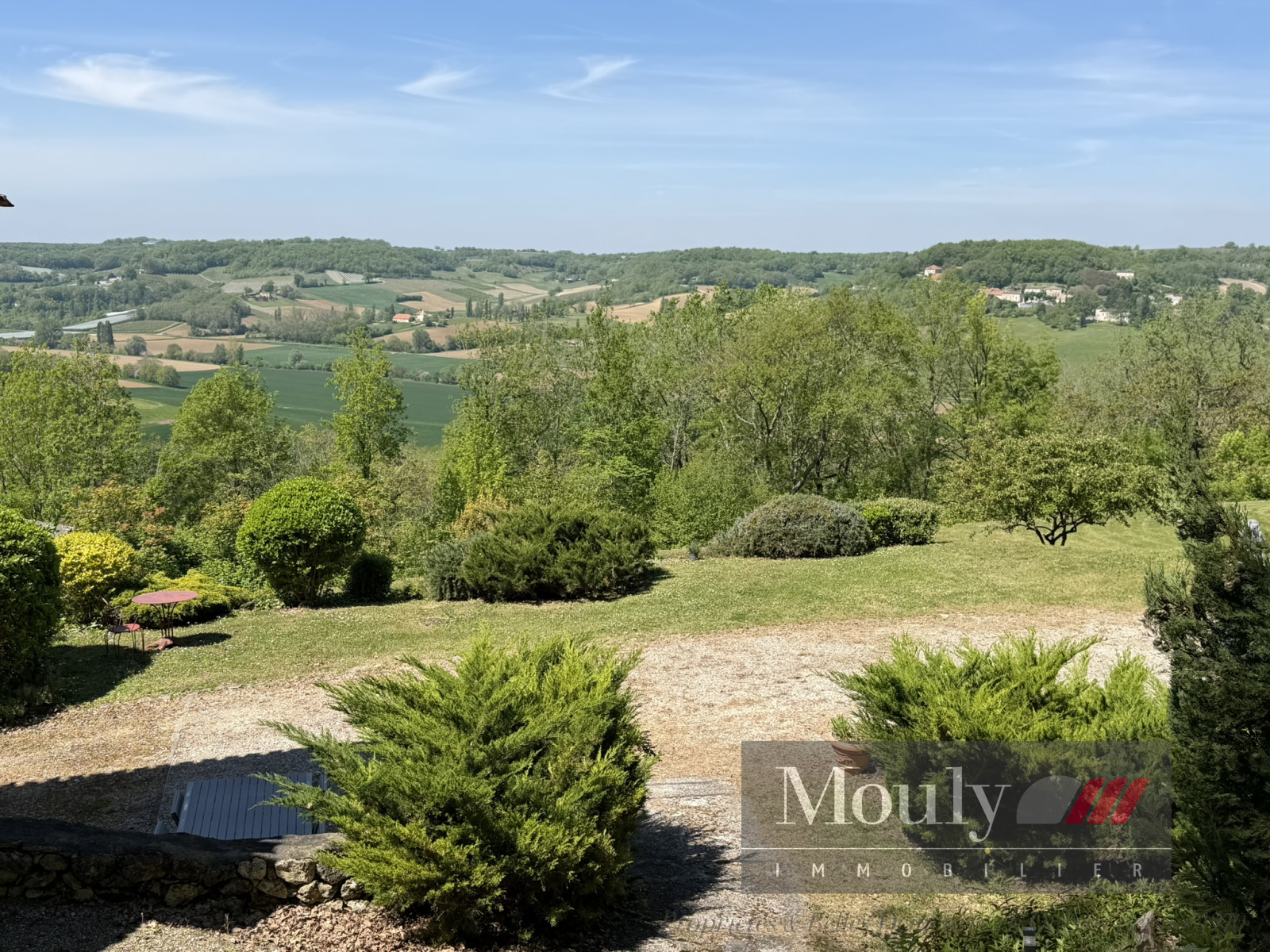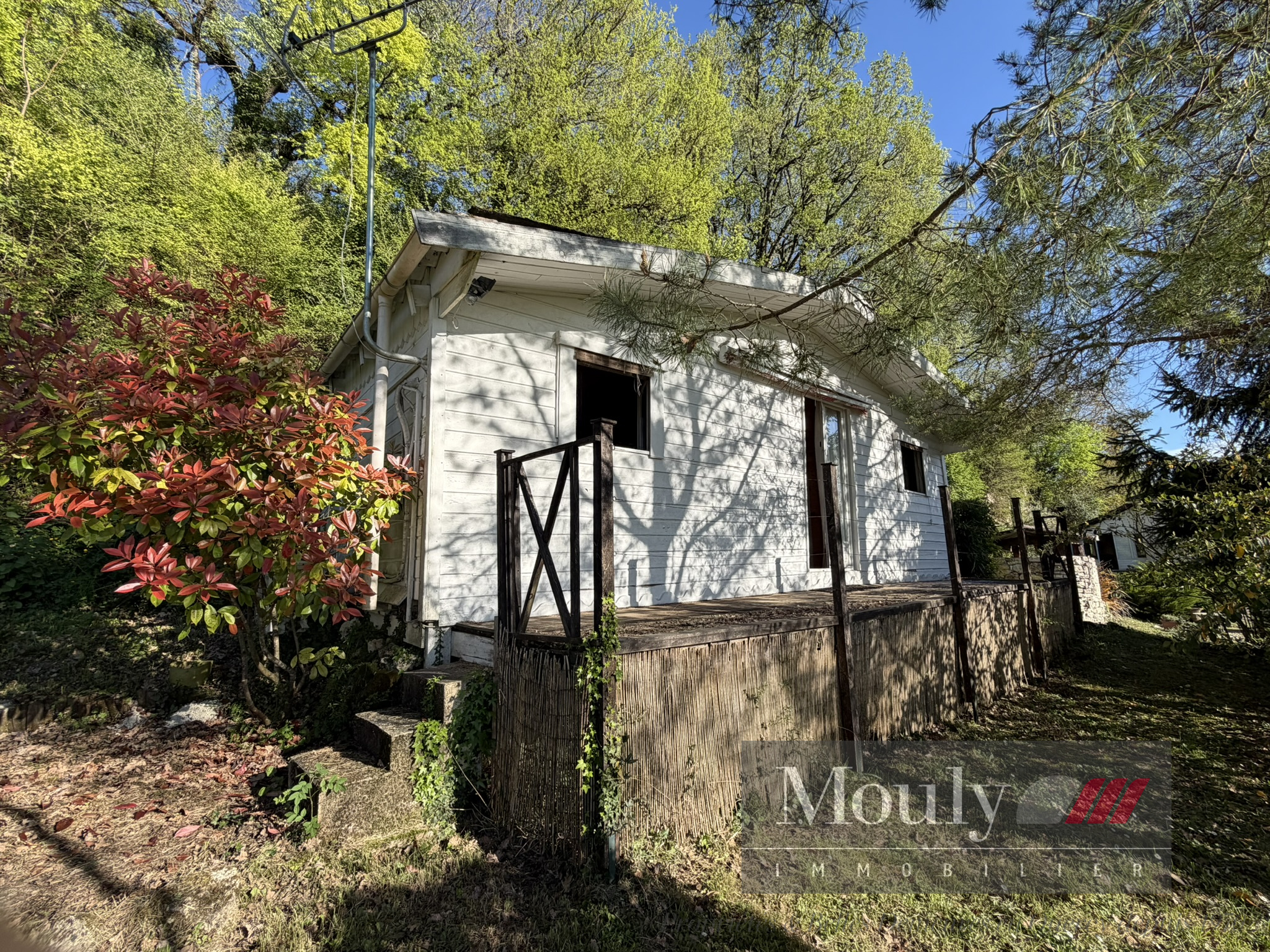 A l'extérieur, vous profitez d'un beau jardin arboré agrémenté des rocher à l'arrière côté bois avec une grotte qui confère au lieu un caractère rare et presque féerique. En plein jardin se trouve l'emplacement d'une piscine (à rénover entièrement) dominant la vallée, offrant un panorama exceptionnel.