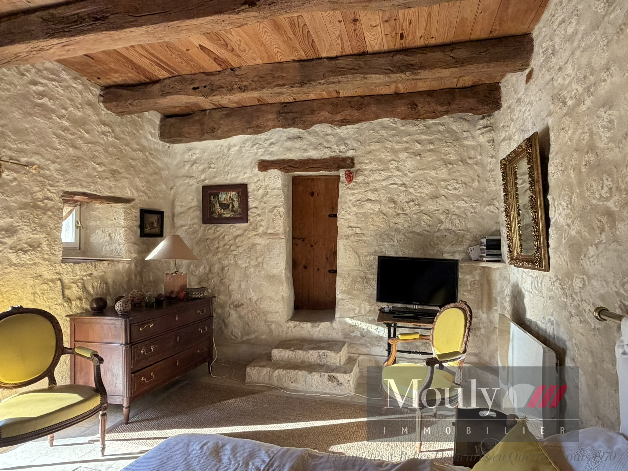 L'atmosphère poétique de cette propriété au charme authentique vous séduira avec sa petite tour pleine de charme, son four à pain traditionnel, son puits bâti, ses rochers et à l'intérieur sa cheminée avec insert, offrant ainsi des moments chaleureux en toute saison.