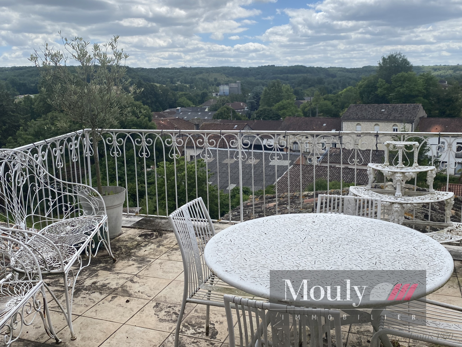 Terrasse plein sud avec vue sur la vallée, cave à vin cave utilitaire avec les pompes à chaleurs, buanderie et salle de sport/atelier.